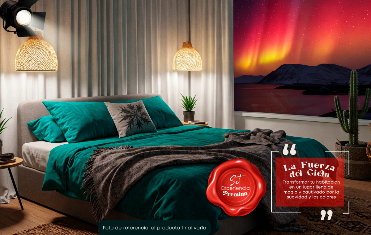 Deja que la mirada de la aurora boreal, ilumina tu espacio con este set, diseñado para transformar tu habitación en un lugar lleno de magia y cautivado por la suavidad y los colores que cambian con cada uno.